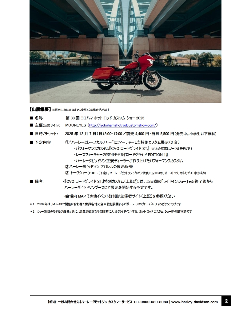2026年のハーレー公式イベント開催カレンダーを発表