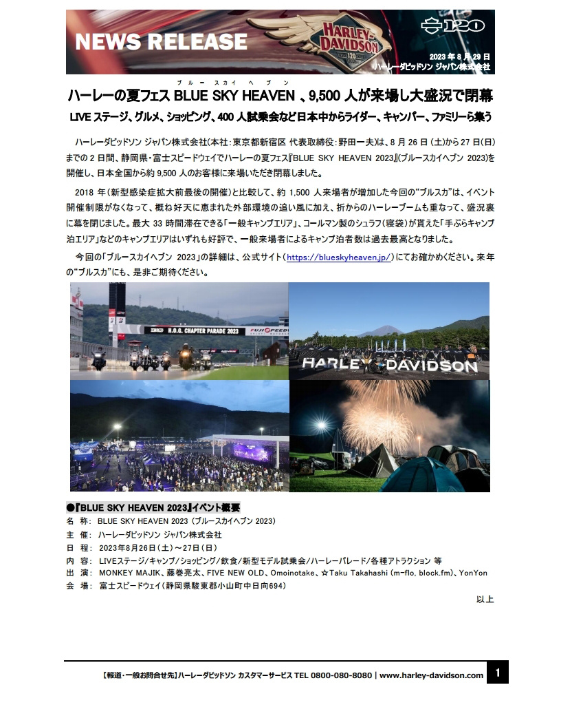 「Freedom for all, All for Freedom(全てを自由のために。自由を全ての人へ。)」を世界で掲げるHARLEY-DAVIDSON®ではこれからも、モーターサイクルと共にある暮らしを通じお客様へ“新しい自由”を提案してまいります。